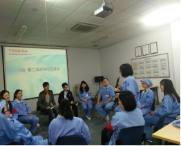 社工系部分学生在赵琼研究员的带领下,前往东芝信息机器有限公司进行企业社会工作活动实习,为企业办公室文员开展以沟通交流为主题的“情暖东芝”小组活动,旨在缓解他们的工作、生活压力,在相互沟通中,加深情感纽带。
