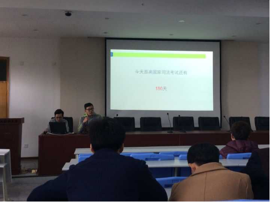 最后,老师和班长们向即将面临司法考试的13级法学的同学做了司考动员。上届司法考试通过率为每个学生敲响了警钟,时刻提醒着同学们必须在接下来的日子里合时规划、合理安排复习计划,以良好的心态和积极作为迎接司法考试。