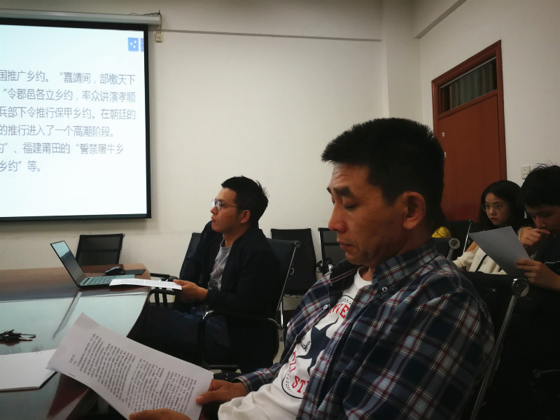 主题报告结束后,许多老师和同学都参与了讨论。田东奎教授认为古代的宗族或远或近,有固定的管辖区域,在这中间有一些法的元素,如类似于民法的拟制,也有如行政管理方面的村民自治,但是单纯用现代法学概念,宗族乡约的很多内容无法完全对应上,因此是否可以从这切入点,思考如何更好地为恢复中华法系作出内涵补充。唐丰鹤副教授提出了,宗族乡约化和族规之间的关系应当如何界定,是否可以更细致的明确下相互的概念。汪庆红副教授也提出,明朝中后期,“私”、“欲”、“情”等观念对儒家文化有了新的诠释和补充,那么这些观念如何在宗族乡约化上具体体现,尚需要认真论证。另外,王俊博士、钱炜江博士、童圣侠博士以及与会的研究生也分别提出了宝贵的意见。龚金镭博士则对于这些意见给出了回应,并表示会在会下针对这些问题再继续完善。