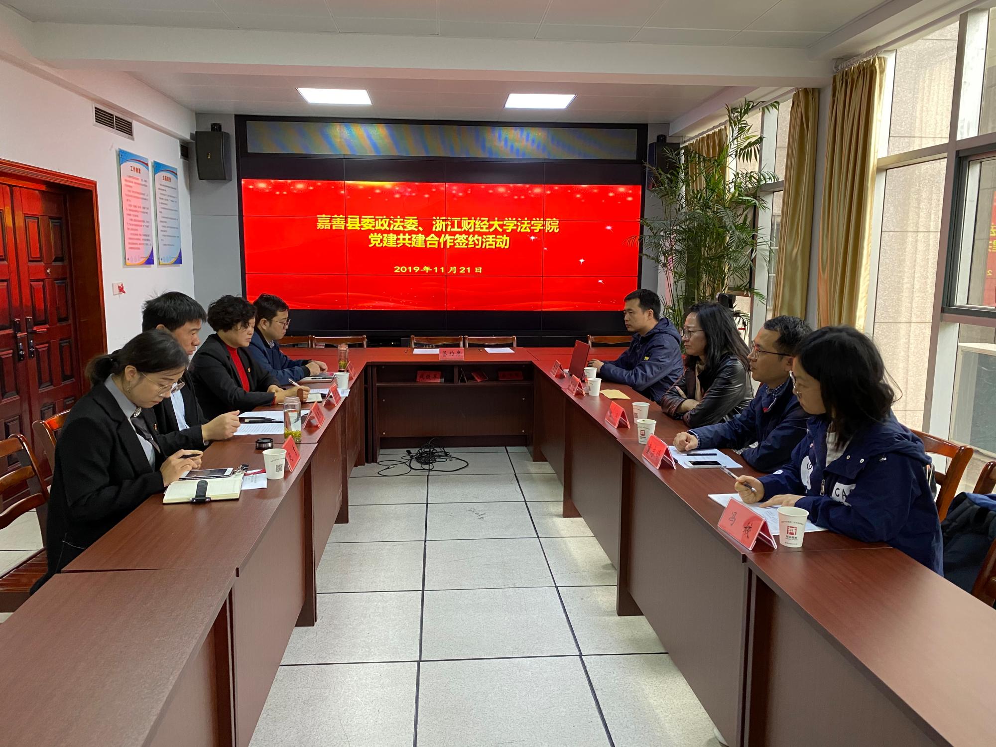 与嘉善县委政法委党建共建合作签约活动在嘉善县政法委一楼会议室举行。嘉善县政法委主持工作书记钱铁军、副书记芮红卫、法学会秘书长周剑、办公室主任赵吉,足球推荐