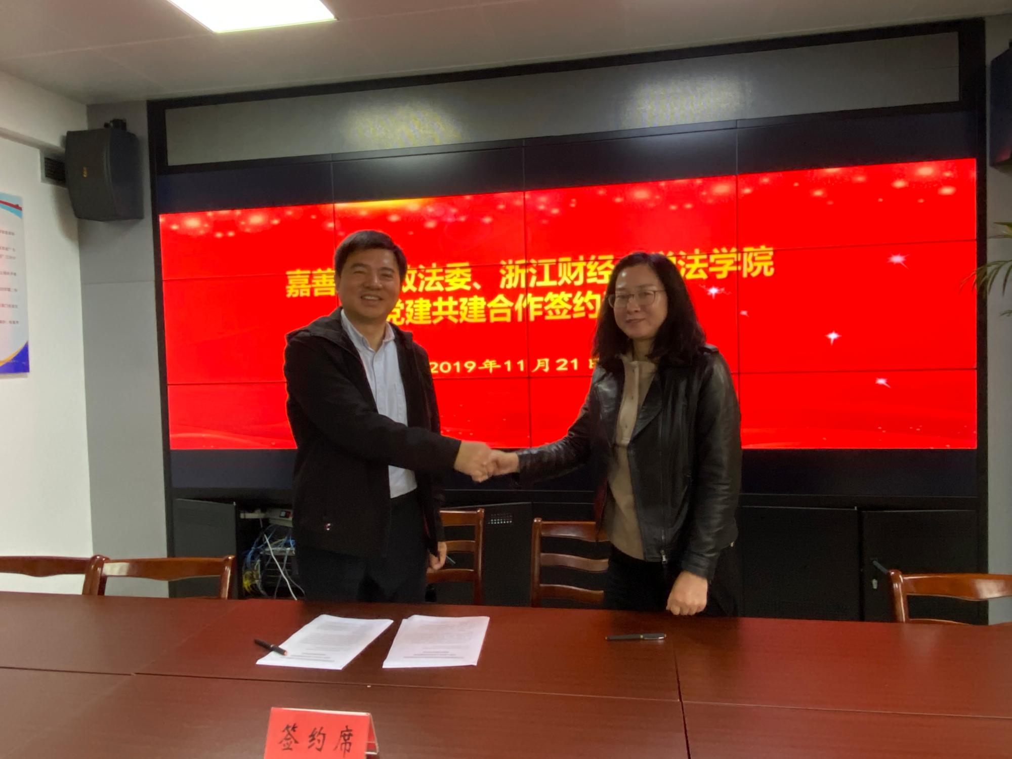 党委书记朱丹、副院长童志锋、办公室主任王文婷、法学专业教师冯姣、李亢出席了签约活动,签约活动由嘉善县政法委副书记芮红卫主持。