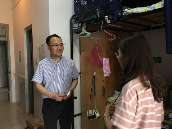 对于2020届毕业生,他也逐一询问了学生目前毕业设计的进度、考研出国情况、就业情况,鼓励同学们积极面对、多手准备,在这样一个特殊的毕业季,为自己的毕业生活画下圆满的句号。各年级辅导员着重强调了宿舍安全消防、宿舍卫生的注意事项,提醒同学们在疫情防控期间养成良好的生活习惯和积极的心理状态。