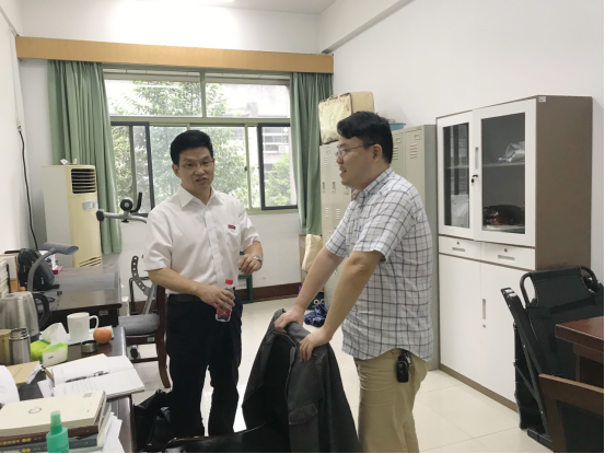 在走访慰问过程中,董进才部长关切询问魏建国老师新入职财大在实际工作、生活是是否存在困难,了解其工作身体情况和家庭生活情况,听取他在学科建设、教学科研方面的意见建议。董进才部长听闻魏建国老师新获批国家社会科学基金项目,对其表示恭贺。