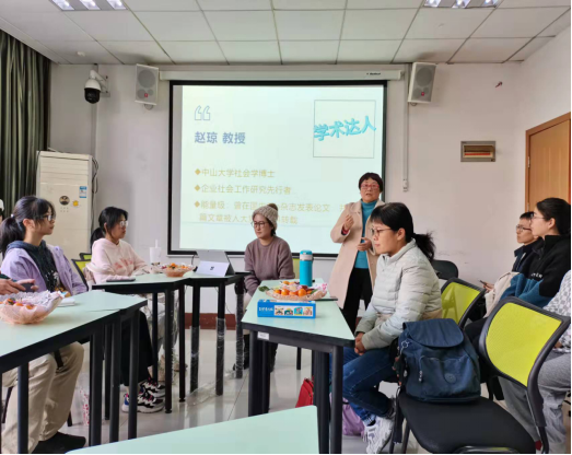在师生见面环节,赵琼研究员、王春霞副教授、王婷副教授、韩宗生博士等参会社工系老师先后就社会工作专业基本情况、发展远景、专业学习等方面向新生进行了介绍和说明,系主任陈建胜副教授则在最后向新生提出了大学学习的希望,可以在4年学习中,在社工大家庭中有所收获。在互动环节,21级社工新生就专业学习的困惑等问题向老师进行了提问。本次活动使师生建立了联系管道,为下一步活动的开展奠定了基础。