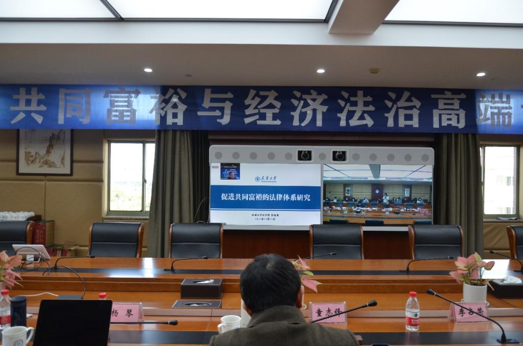 院长孙佑海教授作了题为《促进共同富裕的法律体系建设》的学术报告。报告依次对“关于共同富裕”、“关于收入的三次分配”、“关于促进共同富裕的法律体系”进行了阐述,强调了以人民为中心的理念,指出了共同富裕本质上是平衡效率与公平、兼容发展与共享的问题,是矫正先天环境造成的劣势地位以及消除制度性因素导致的机会不均等,让事实上的社会最弱势群体享受社会进步带来的福祉。