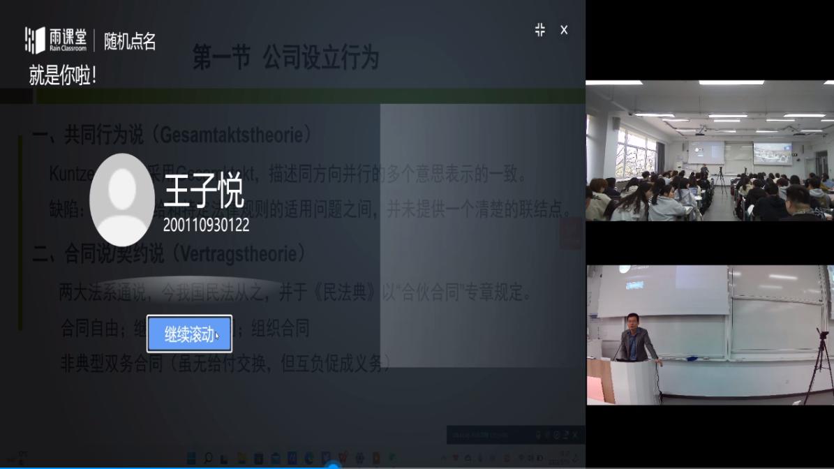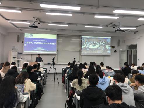 的学生同上一堂《商法学》课。虽然相隔4000多公里,他们听的是同一个老师的同一堂课,并且互动频繁,气氛活跃。