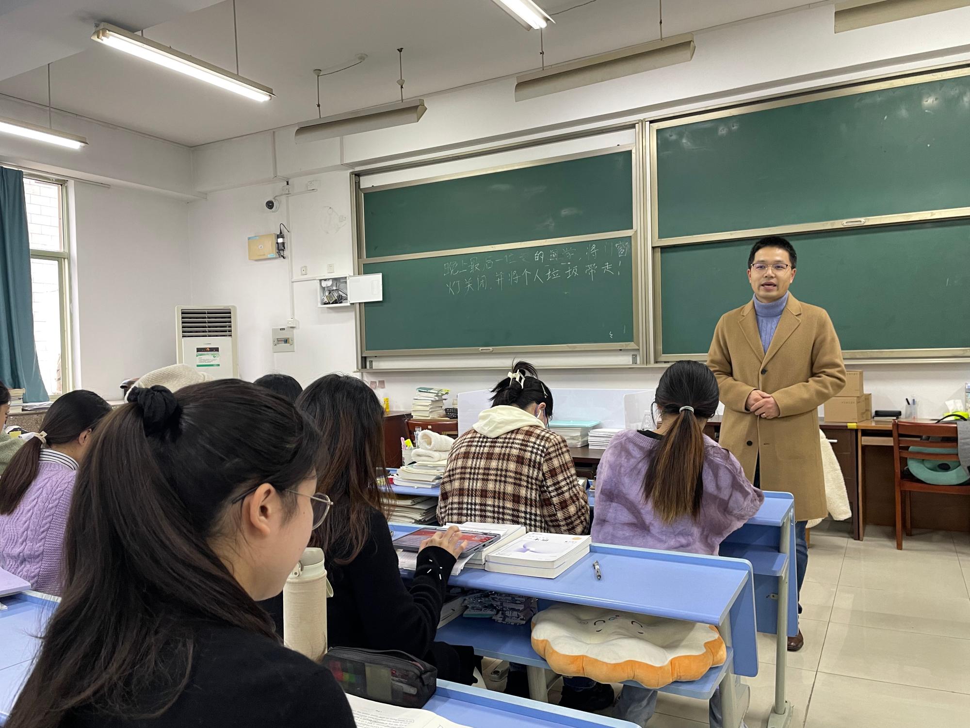 唐勇副院长勉励同学们抱着必胜的信心,相信自己的付出一定有所收获,希望同学们在最后冲刺阶段,咬定青山不放松,越是困难越向前,坚定考研信心,以良好的心态冲刺考研。王文婷副书记嘱咐同学们劳逸结合,做好考前准备,消除焦虑,缓解紧张的情绪,寄语广大考研学子自信迎考、沉着应考、顺利赢考。