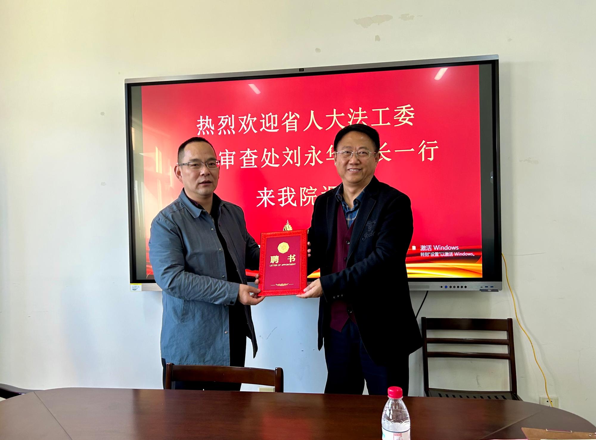 副校长、浙江省地方立法与法治战略研究院院长李占荣教授致辞,并为刘永华处长颁发兼职研究员聘书。
