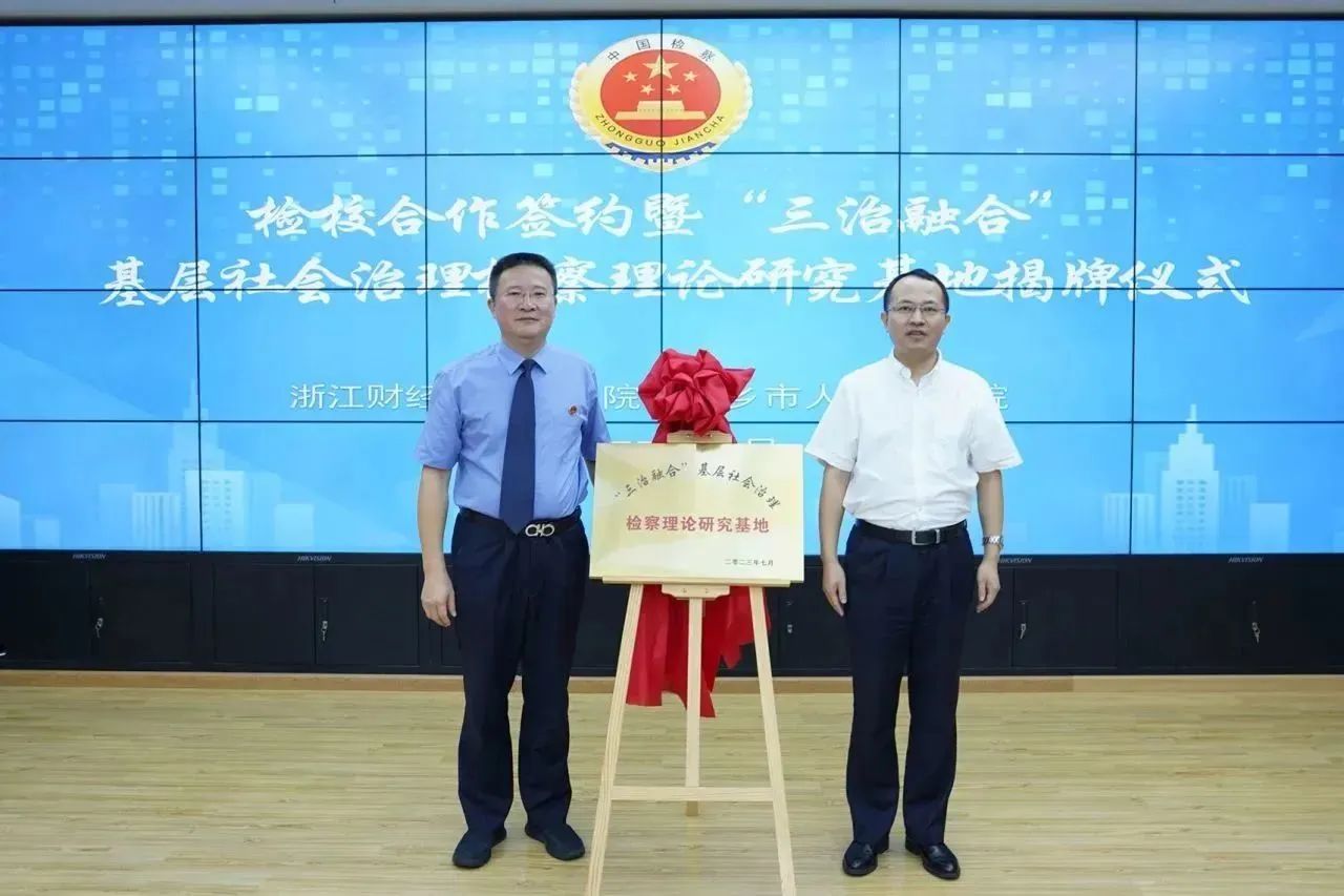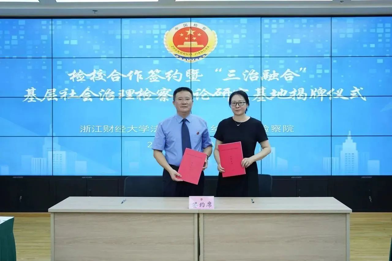 与桐乡市检察院举行检校合作签约暨“三治融合”基层社会治理检察理论研究基地揭牌仪式。嘉兴市检察院副检察长(挂职)、足球推荐