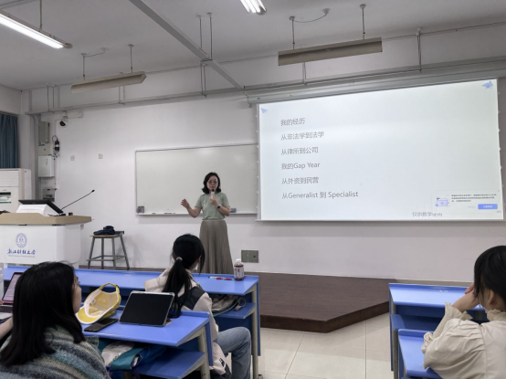 职业人生分享会是由23级法学非诉班班主任张晓晨老师策划的系列活动,旨在邀请各行各业的精英人士分享他们的人生经验、执业经历,为同学们指路,现已举办到第五期。