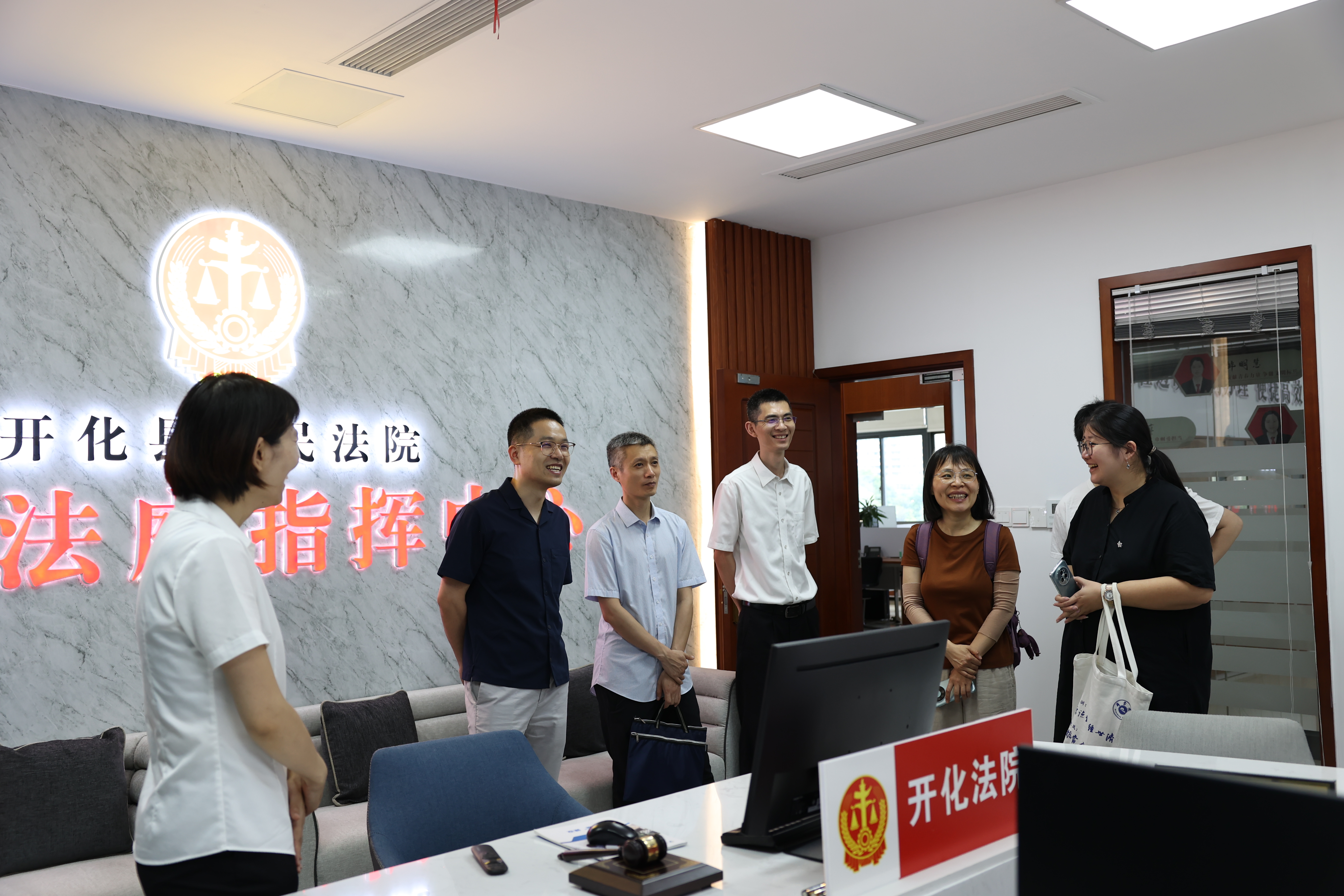 调研期间,王勇院长详细介绍了开化法院的基本情况,包括法院的发展历程、主要职能、特色工作以及近年来在司法改革方面取得的显著成效。随后,参观了法院的共享法庭、家事解纷处理中心等,让大家直观了解了法院的工作环境和司法实践的前沿动态。