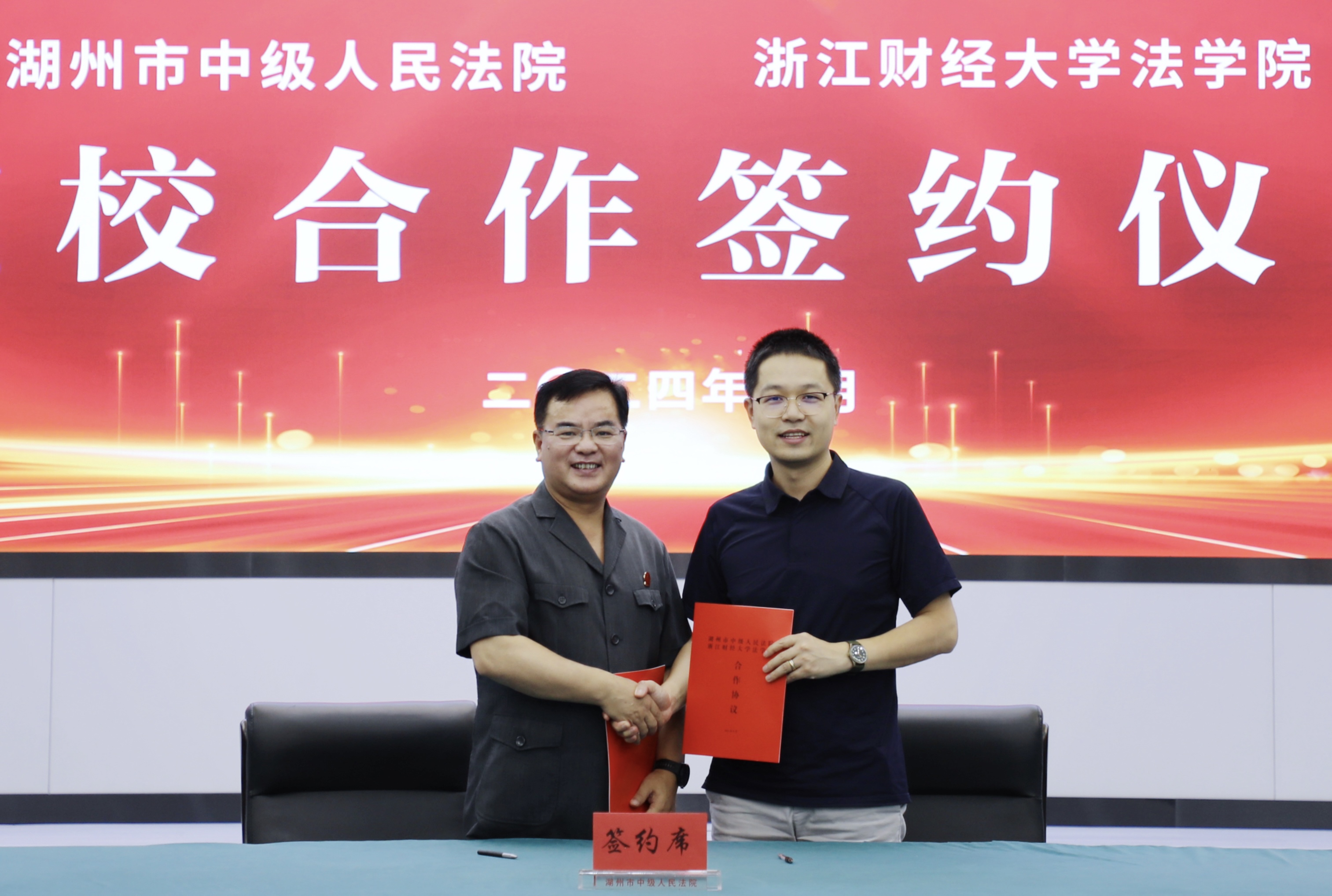 副院长李海龙、党委副书记胡哲以及教师代表、学生代表,湖州中院党组成员、政治部主任朱慧以及部门负责人、校友代表也悉数到场,共同见证了这一重要时刻。