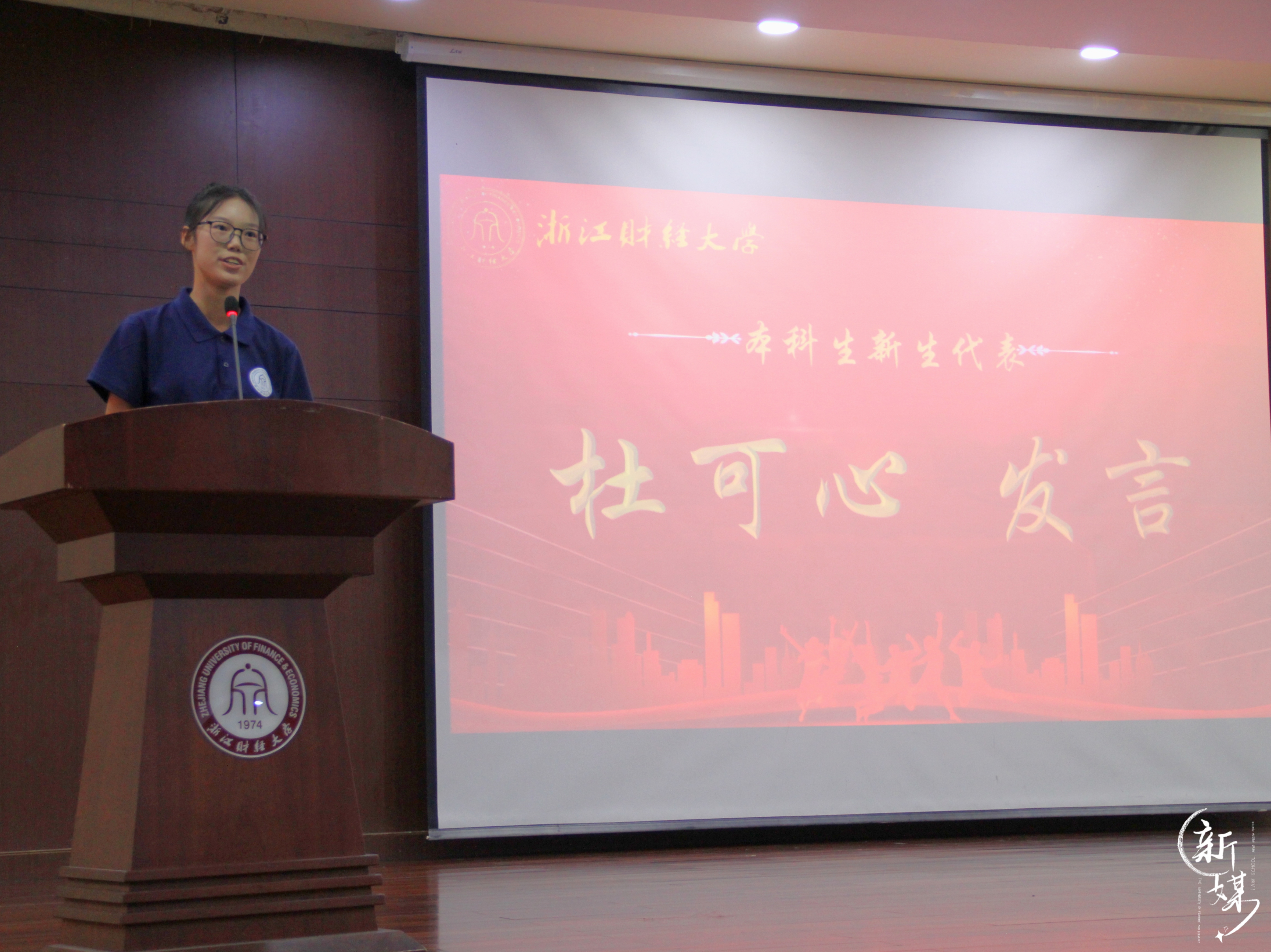 2023级法学3班金佳卉作为高年级本科生代表发言。她结合自身经历,鼓励学弟学妹们建立自信,学会尊重,勇于改变,开拓更多可能性,牢记入学初心,在浙财成为更好的自己!