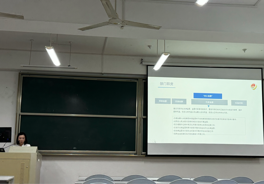《检察理论与实务》第四讲由临平区副检察长郁勇主讲,主题是刑事执行与刑事执行检察相关问题。郁检察官向研究生介绍了刑事执行种类、刑事执行检察沿革、执行刑期监督、超期羁押监督等知识点内容,并且结合一些案例和大家一起深入探讨了刑事执行检察实务中的一些争议问题。这堂课让研究生进一步了解了如何具体执行刑罚以及在刑罚执行中检察院的相关职责。