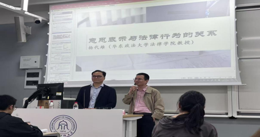 杨教授凭借其深厚的法学造诣,在专题讲座中巧妙架设起传统理论与前沿思维的对话通道。通过系统梳理法律行为与意思表示的联系与区别,为在场师生构建了清晰的知识坐标系,展现出法学理论研究的独特魅力。