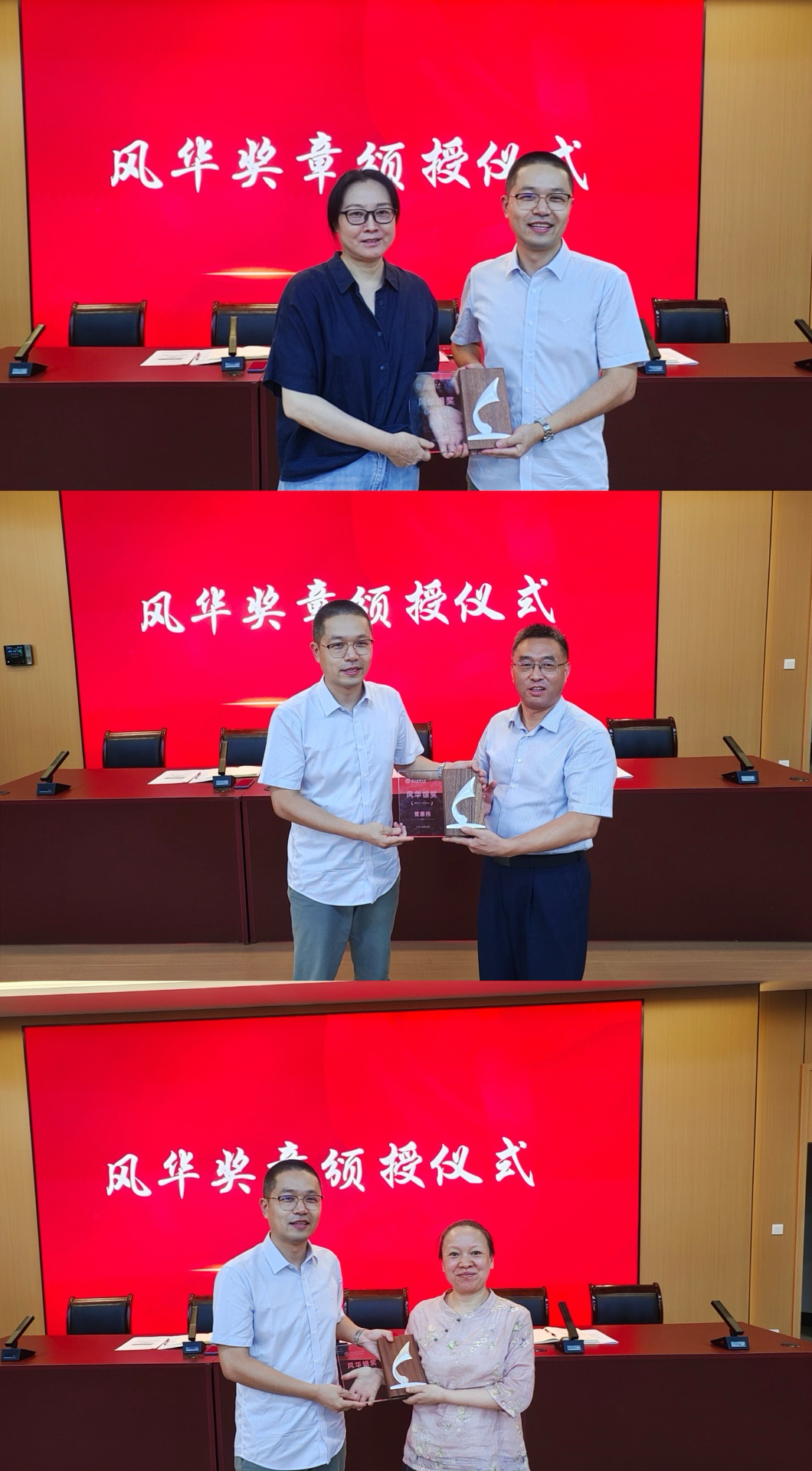 院长唐勇为入职财大三十年的老师颁授“风华”奖章银奖,为入职财大二十年的老师颁授“风华”奖章铜奖,并代表足球推荐