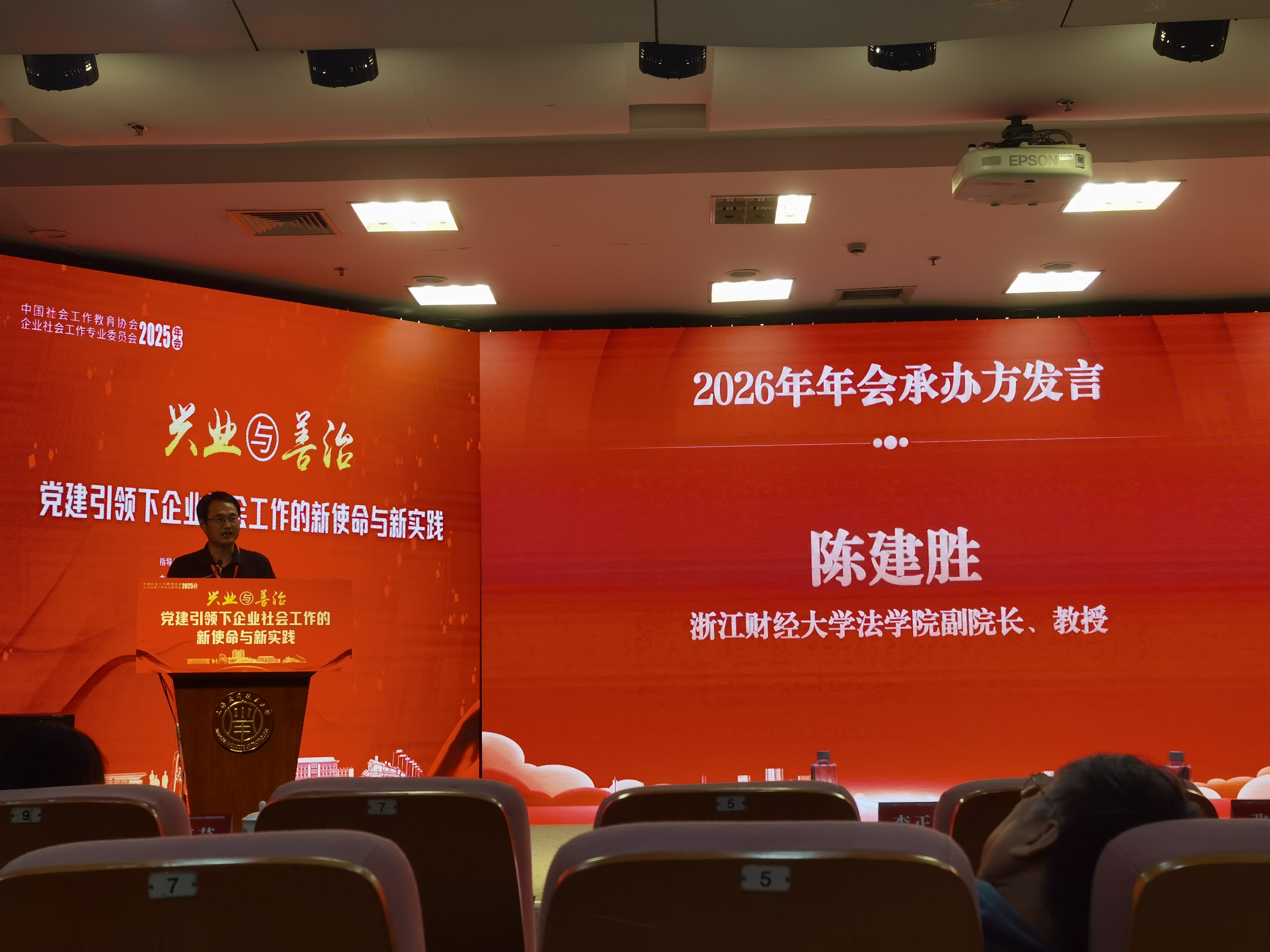 副院长陈建胜教授受邀参加本次大会。童志锋教授在会议上从服务模式、实践经验角度,分享了新就业群体社会工作的探索成果。陈建胜教授作为2026年年会承办方代表发言,介绍了筹备规划,表达了办好下一届年会的信心与决心。