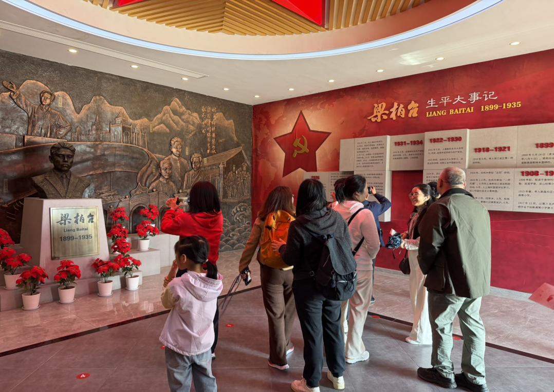 活动首站于11月15日上午来到梁柏台纪念馆。在讲解员的引导下,党员教师们认真参观了“寻路求索”“浙东火种”等展区,通过珍贵的历史照片、实物展品和场景复原,详细了解了我国红色政权法制建设的开拓者梁柏台同志投身革命、追求真理的一生。丁洪在参观中强调,梁柏台同志的革命精神和法治理念,对新时代教育工作者坚守育人初心、担当使命具有重要启示意义,全体党员教师要从革命先辈事迹中汲取奋进力量,将红色基因融入教育教学工作。