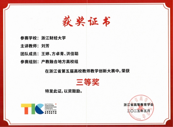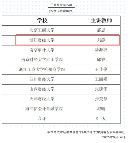 经济法系刘静老师获竞赛三等奖。