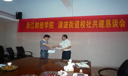 与杭州上城区清波街道校社合作恳谈会暨校社合作签约仪式如期举行,双方签订了实习教学基地协议书,基地名称为浙江财经足球推荐