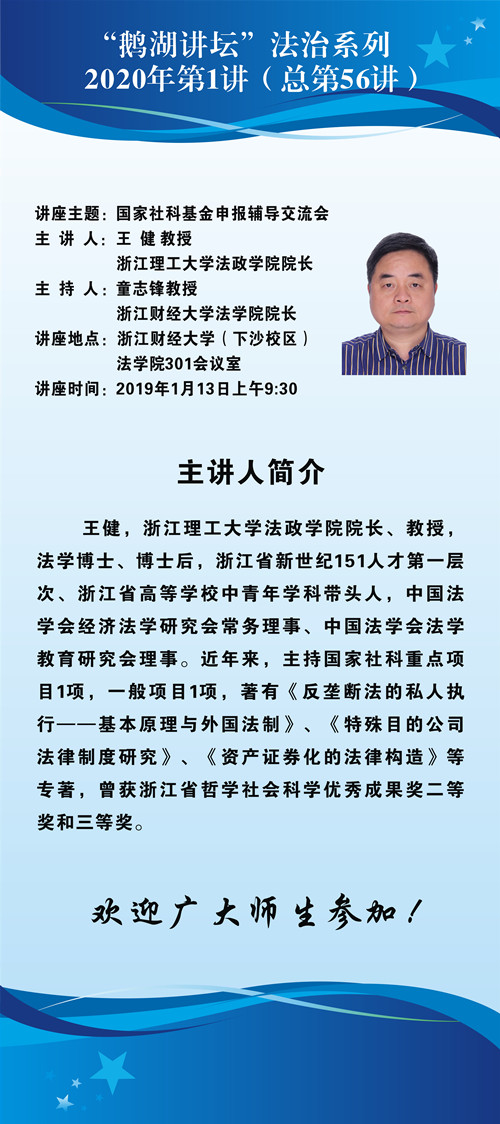 “鹅湖讲坛”法治系列2020年第1讲(总第56讲)浙江理工大学法政足球推荐 院长王健教授