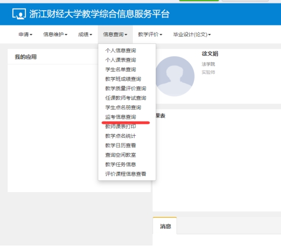 具体查看途径:教务处网站-教务系统-信息查询-监考信息查询-考试名称选择(期末监考)详情请见下图