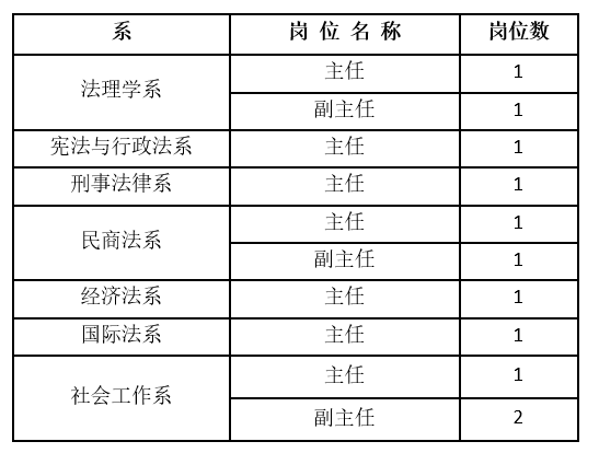 15人以上的系设系主任1名、副系主任2名;10人及以上的系设系主任1名、副系主任1名;10人以下的系设系主任1名。