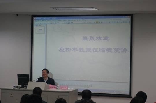 (图为应松年教授在做讲座)