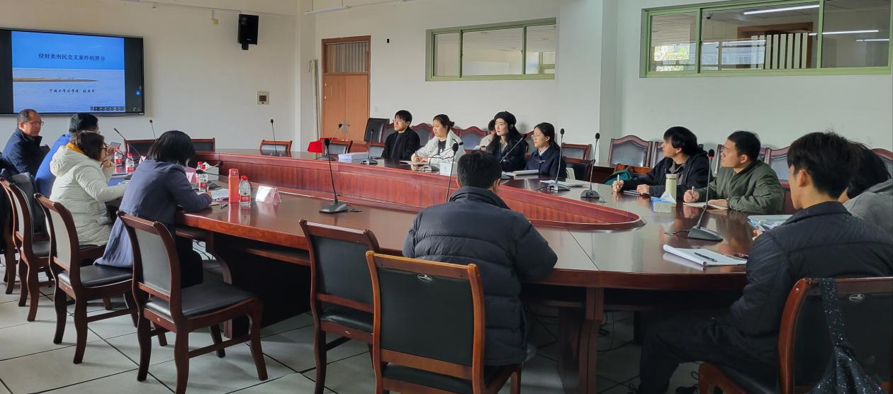 师生带来一场以“侵财类刑民交叉案件的界分”为主题的学术讲座。本次讲座由刑法系主任郝艳兵副教授主持,章惠萍教授、冯姣副教授、王金建博士、姚瑶博士和法学专业研究生参加了本次讲座。