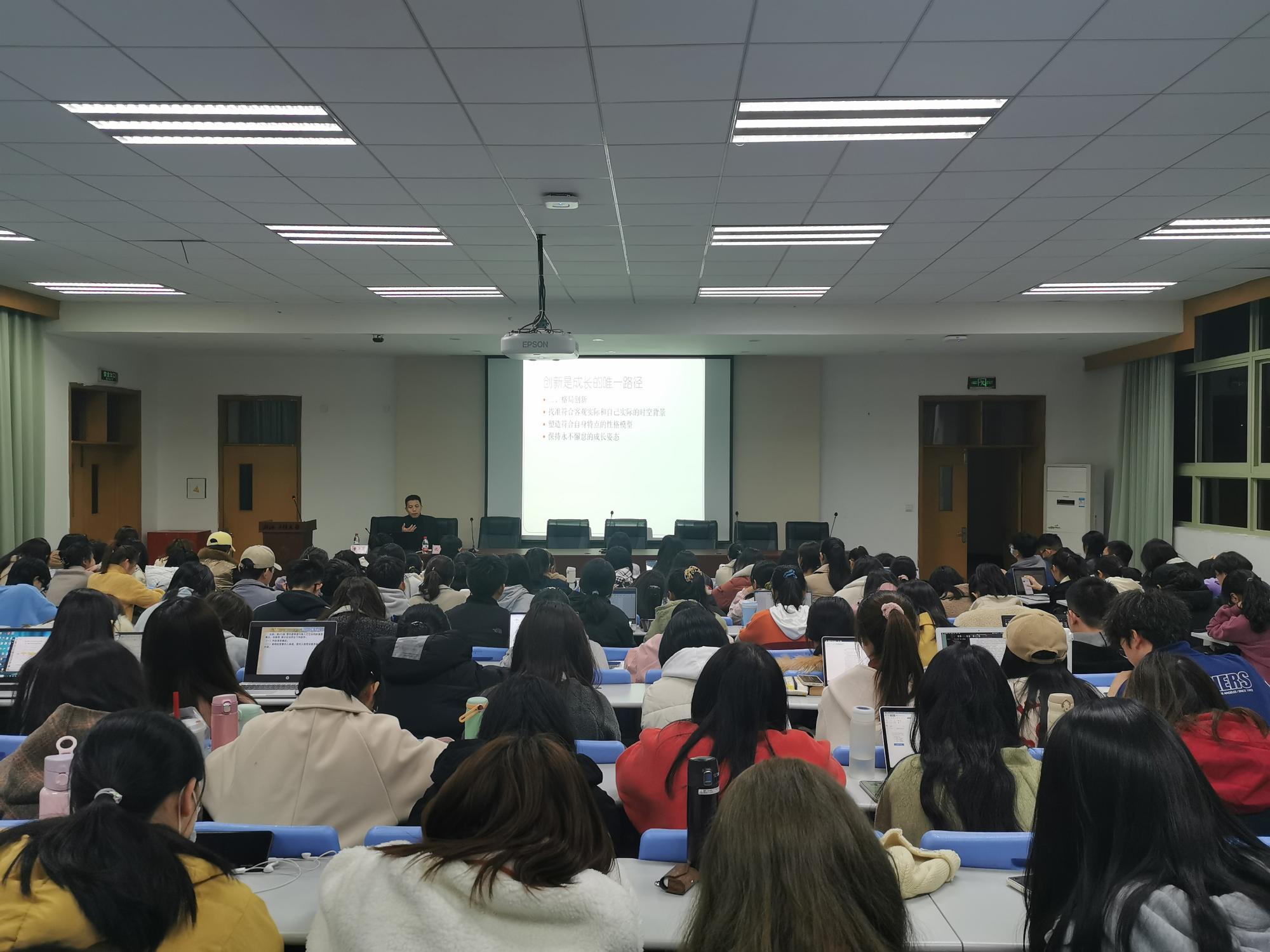 沈醒校友结合自身学习、工作经历,以“新发展阶段大学生党员的成长路径”为主题展开党课,帮助学生规划未来。他寄语学生,创新是成长的唯一路径,一是要注重思维创新,树立不创新就淘汰的危机感、秉持给予自身长板的创新理念、始终保持永不妥协的思辨能力;二是要注重格局创新,找准符合客观实际和自身实际的时空背景、塑造符合自身特点的性格模型、保持永不懈怠的成长姿态;三是要注重平台创新,永远保持主动寻找平台的能力和水平、创建属于自己平台的目标。沈醒校友的党课主题鲜明,内容丰富,事例鲜活,既有理论高度,又贴合当代青年学子思想实际,给同学们带来了一场生动的精神食粮。