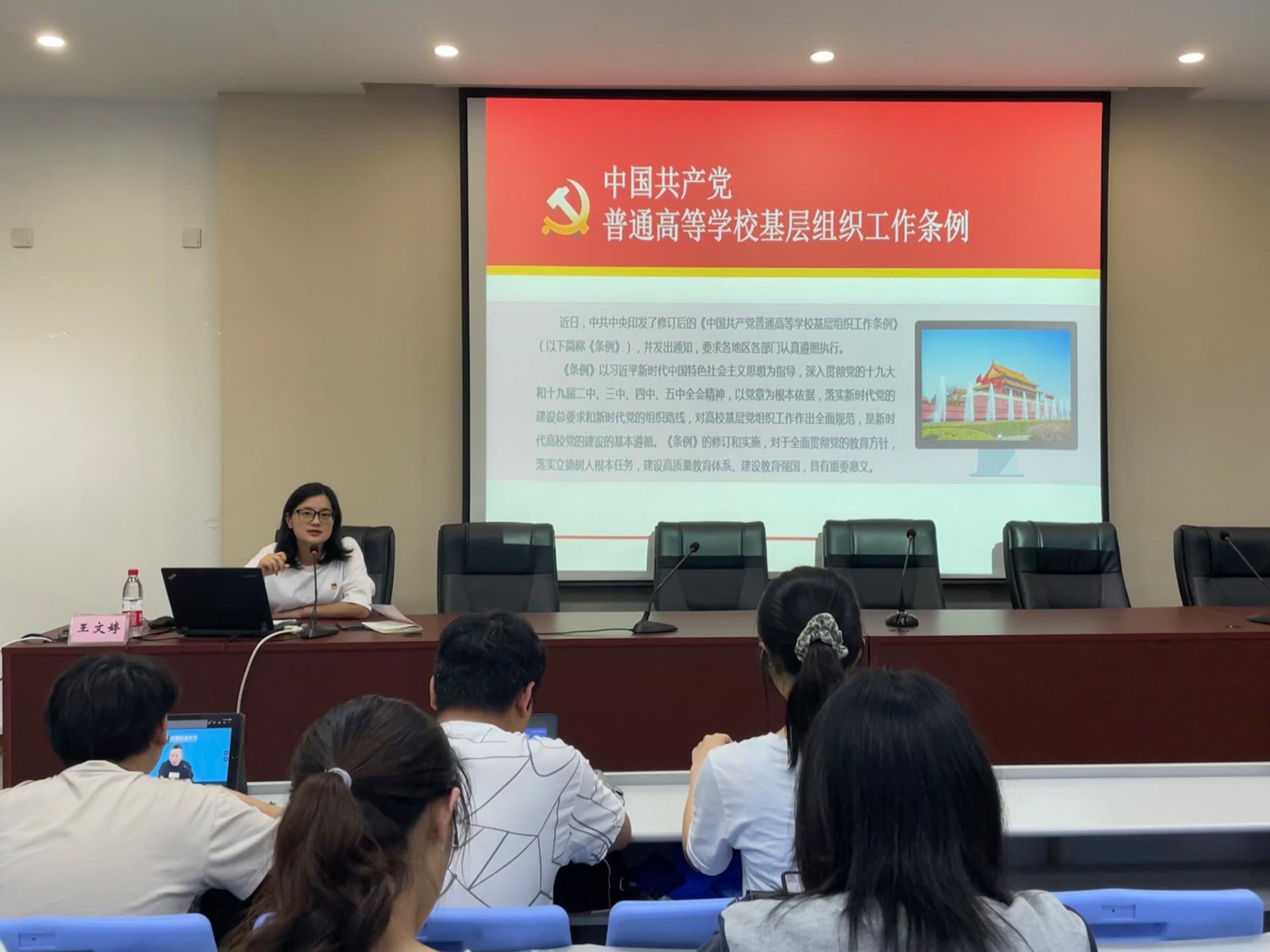 基层组织工作条例》修订的背景、过程、意义、贯彻和落实等方面为新发展党员进行了全面解读,她强调,大家要坚持学思践悟,做到知行合一,在学习工作中把党员身份亮出来,把先锋形象树起来,以优异成绩庆祝中国共产党成立100周年。