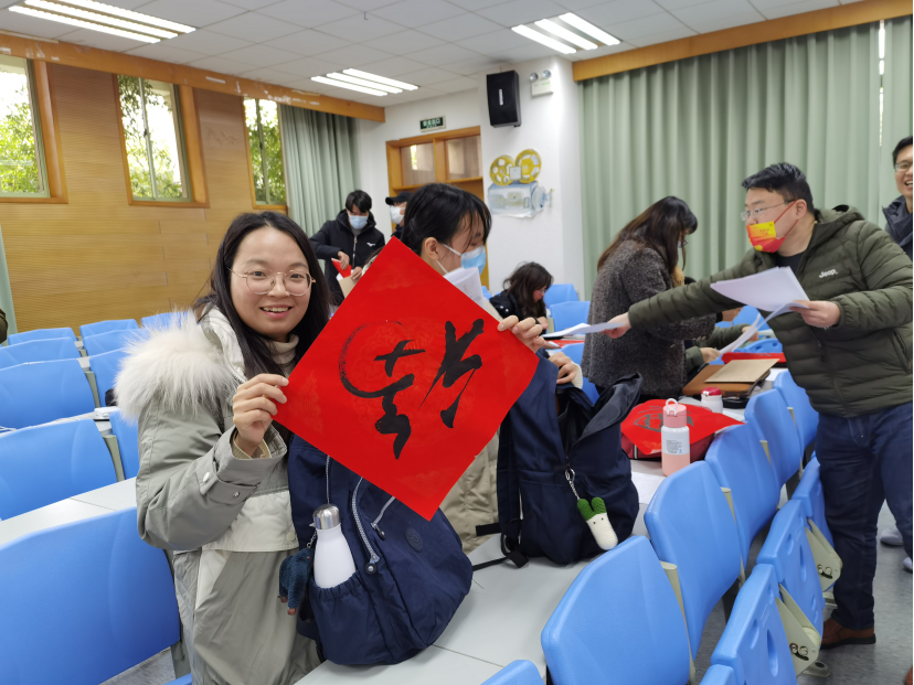 为喜迎2022年的到来,12月28日下午,足球推荐 分工会在101会议室举行“寅虎送福迎新年”活动,足球推荐 党政、工会领导为全体老师送上书法手写“福”字。