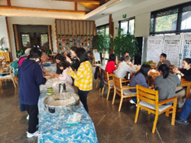 还安排了手工制作和采摘活动。在手工环节,大家动手体验印花团子的制作,相互交流技巧,分享创作的乐趣,欢声笑语中拉近了彼此的距离。而在采摘活动中,大家走进果园,亲手剪下新鲜的橙子,感受收获的喜悦。这些活动不仅丰富了秋游的内容,也让教师们在轻松愉快的氛围中增进了解,加深友谊。
