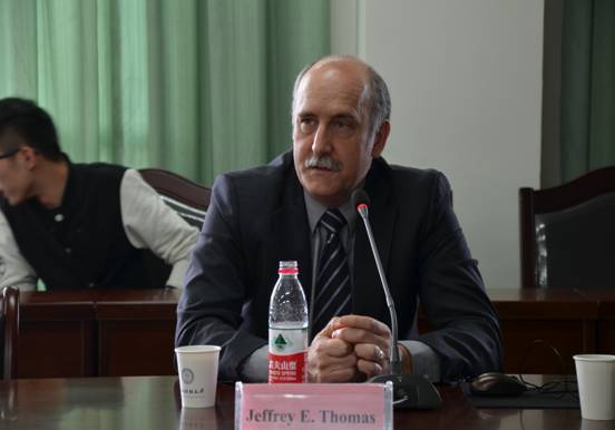 讲座中,Thomas教授以生动具体的实例分析了美国司法制度的三大特点:三权分立、司法审查和抗辩制度,介绍了美国习惯法的定义及其在司法实践中的运用和发展。讲座后,Thomas教授还同与会师生进行了深入交流。