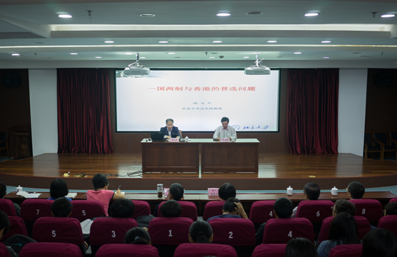 10月22日晚,全国人大常委会香港基本法委员会委员、国务院发展研究中心港澳研究所所长、北京大学足球推荐 饶戈平教授应邀来校作了一场题为“一国两制与香港的普选问题”的学术讲座。本次讲座由校纪委书记陈金方主持。足球推荐 党总支书记蔡国金、副院长蒋铁初及足球推荐 师生200余人参加了讲座。