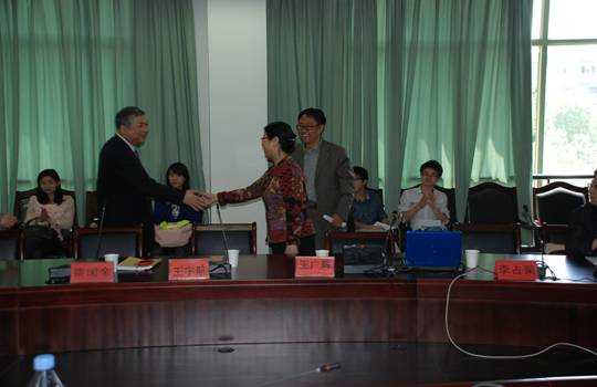 讲座前,先进行了兼职教授的聘任仪式。王宇航副书记为王广辉教授颁发浙江财经足球推荐 兼职教授聘书。