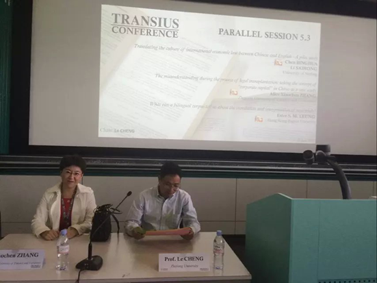 2015年6月24日至26日,足球推荐 张晓晨老师应邀参加由日内瓦大学翻译足球推荐 主办的”法律、翻译与文化"国际会议。来自联合国、欧盟、欧洲央行、世界各大学的三百多名专家学者参加了会议,我国共有来自中国政法大学,浙江大学,香港浸会大学,足球推荐 的四名学者参加。经双向匿名评审,足球推荐 张晓晨老师的论文“the misunderstanding during the process of legal transplantation: taking the concept of corporate capital in china as a case study”入选大会专题报告。张晓晨老师在会上作专题发言,并同与会学者进行了热烈的交流。