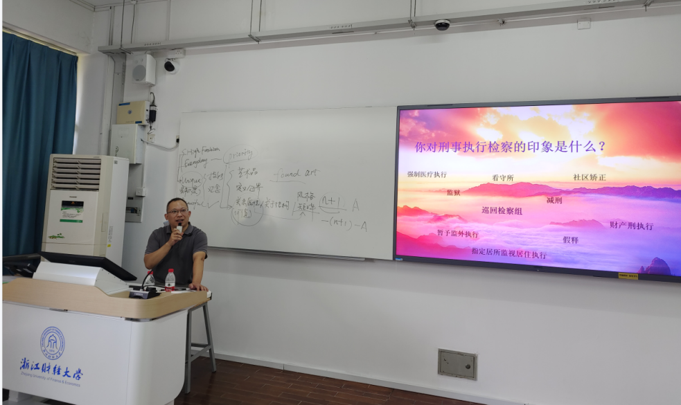 《检察理论与实务》第二讲由杭州市临平区人民检察院郁勇检察官主讲,主题是刑事执行检察制度综述及若干实务问题研究。在课程伊始,郁检察官以一个轻松的问题“你对刑事执行检察的印象是什么?”热络了课堂气氛,接着从四个监督方向、十个监督领域为学生们展现了一个系统完整的刑事执行检察制度体系。课程详细介绍了自2012以来国家刑事执行检察工作的全面开展与监督情况,强调了检察官的检察职责,并回答了“为什么要对刑事执行进行监督”这个值得令人深思的问题。郁检察官以其风趣幽默的语言加深了学生们对刑事执行检察实务问题的认识,让学生们了解了理论知识和实际处理问题方面存在的差异。