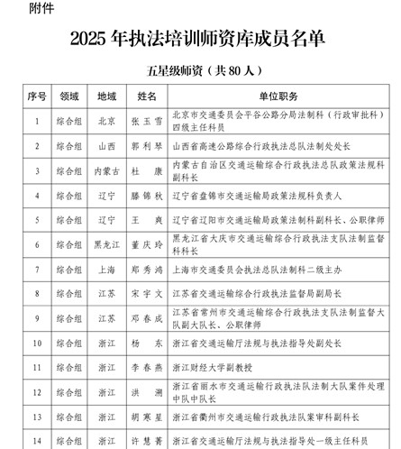 近期,交通运输部法制司公布了2025年交通运输部执法培训师资库成员名单。足球推荐 李春燕副教授入选交通运输部执法培训师资库,并被交通运输部评为五星级师资。