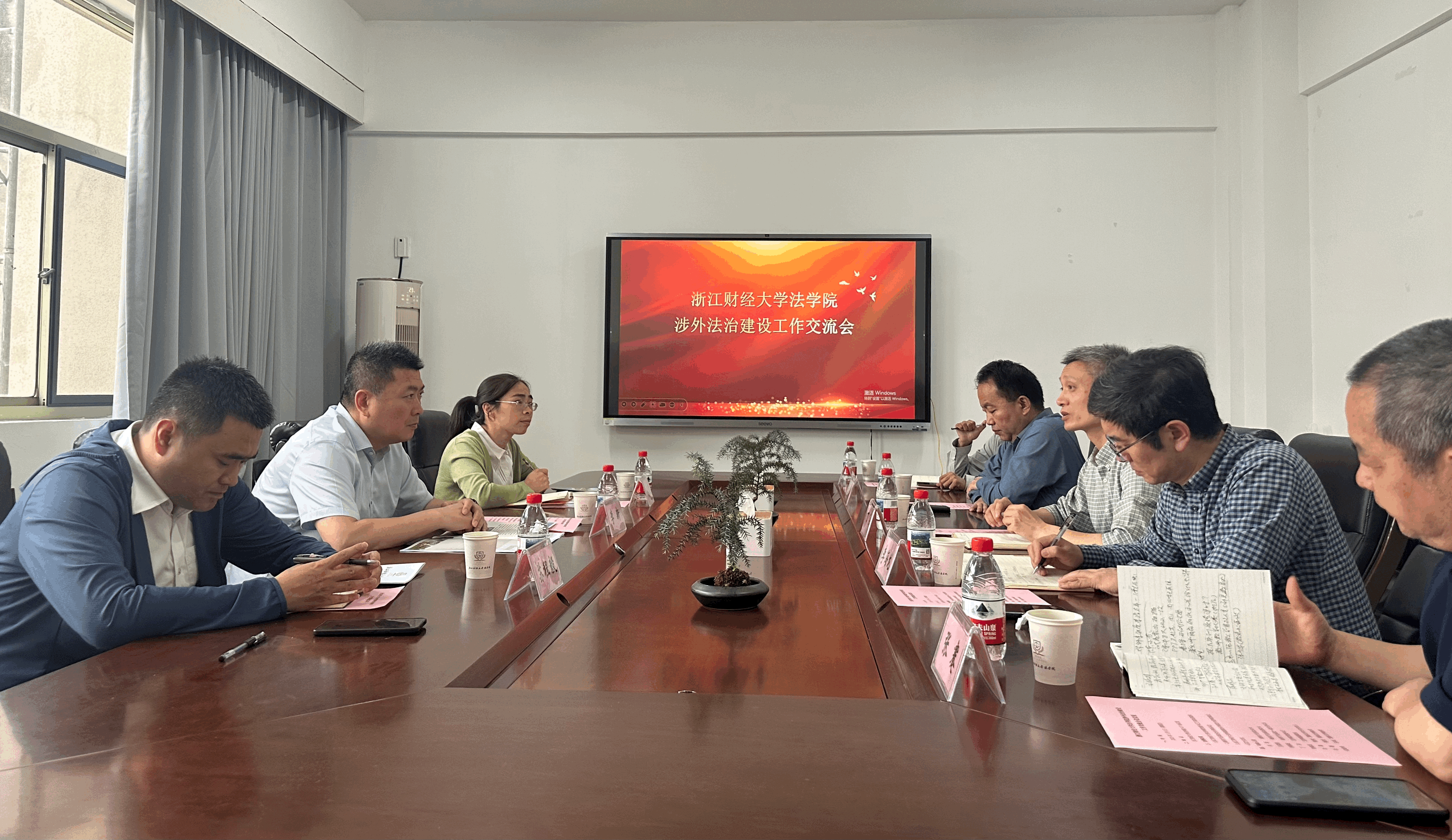 党委书记丁洪、副院长李海龙、国际法学方向负责人刘勇教授及教师代表张蹇教授、吴培琦博士出席会议。