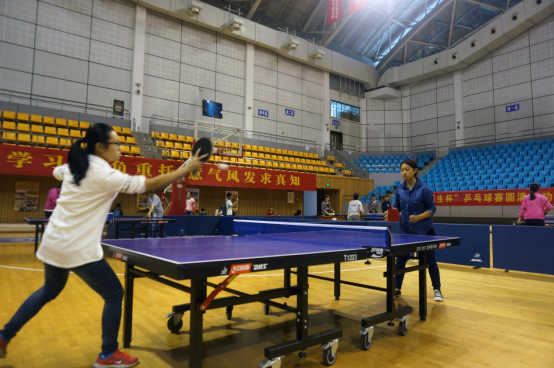 的乒乓球爱好者,吸引了许多热爱运动的观赛者。在众多学生会体育部工作人员的有序组织下,整场比赛秉持着公平、公正、公开的原则进行,场内的气氛十分的活跃,每位选手都身经百战,在掷球挥拍间尽显高超的球技。