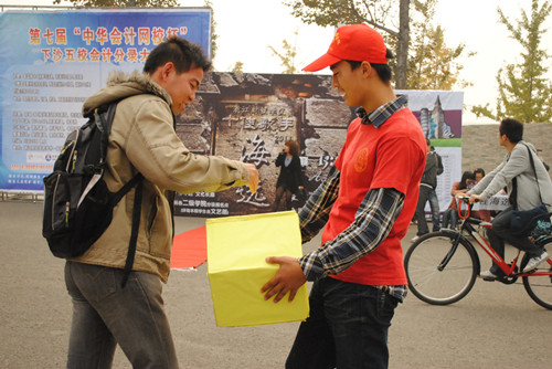 接下来,主持人对本次“一元钱工程”活动的主要内容——“四项计划”、“五项活动”作了介绍,活动内容丰富而新颖,吸引了许多过往同学驻足观看。