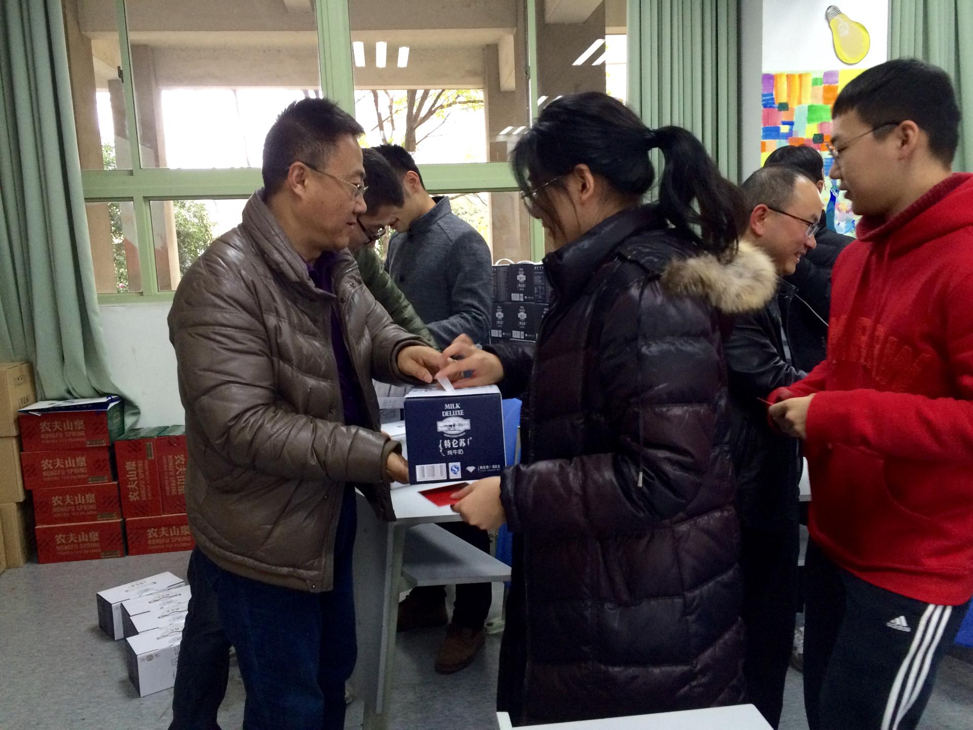 低年级同学的加油视频后,李占荣老师、陈伟老师为同学们送上牛奶和祝福卡片,同时预祝同学们考出佳绩。