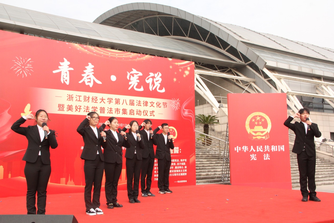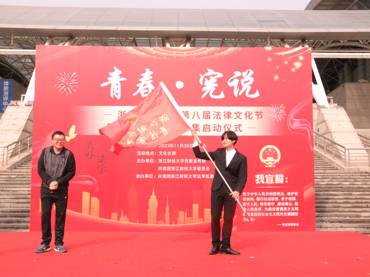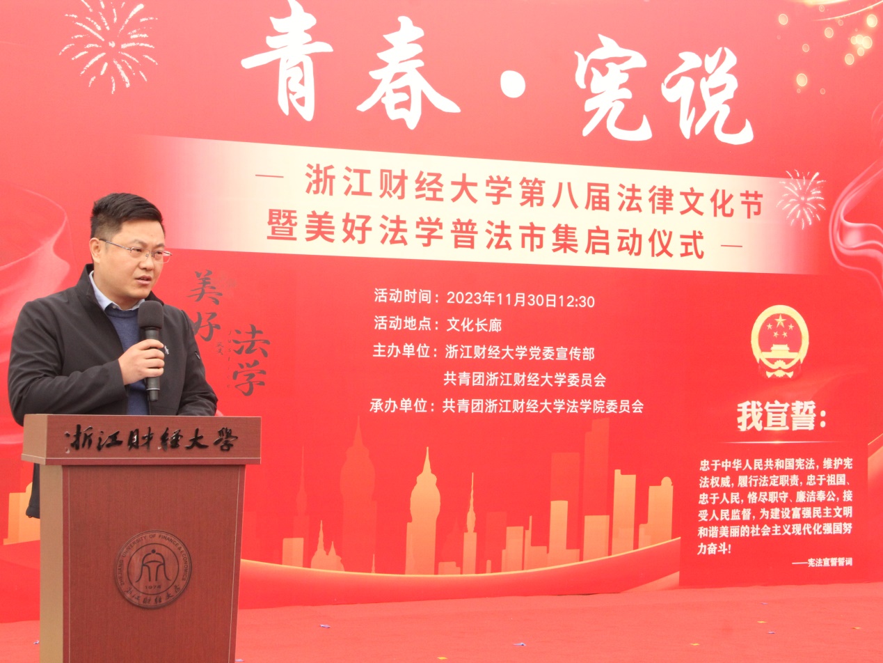 于11月30日举行“青春·宪说”第八届法律文化节暨“美好法学”普法市集启动仪式。校党委宣传部部长王正新、学生处处长曹桢、教务处处长贺武华、校团委书记陆颋浩、足球推荐