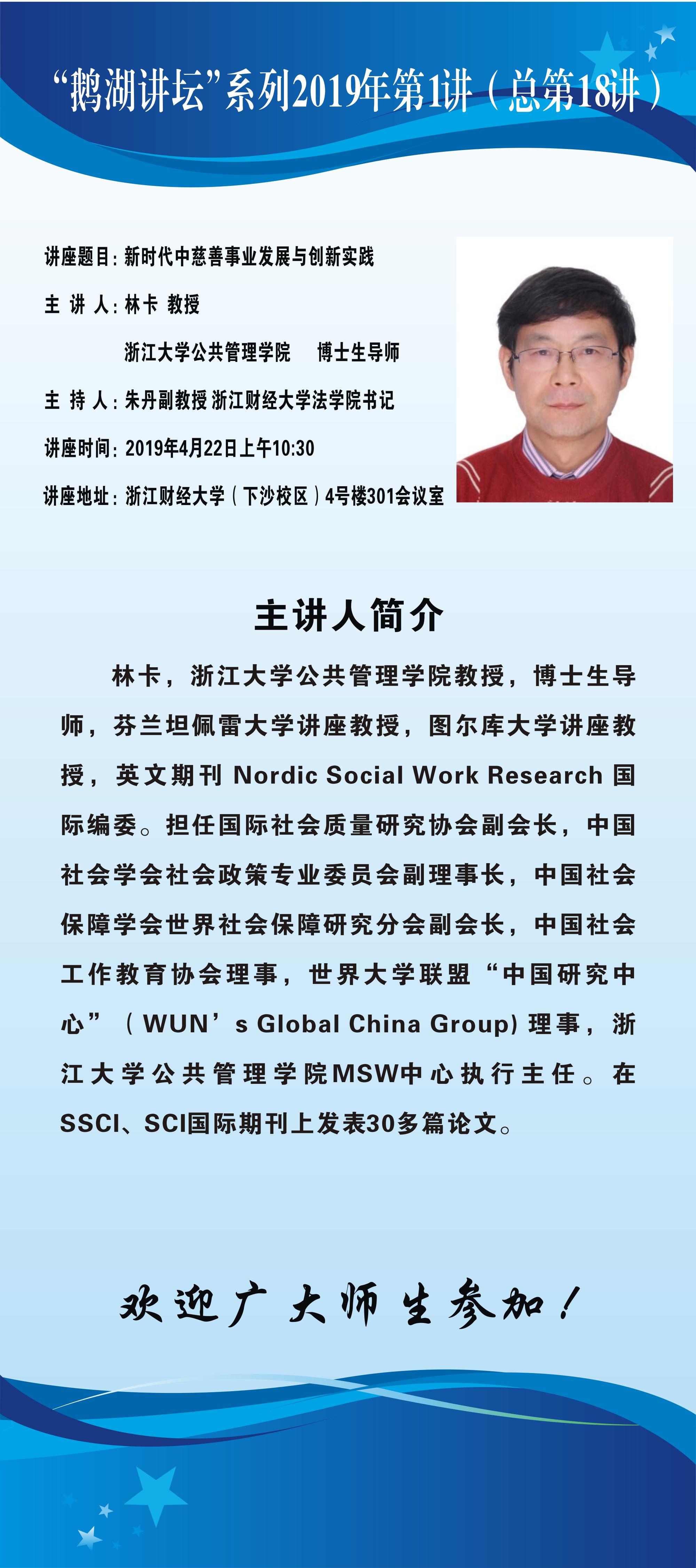 “鹅湖讲坛”社会学系列2019年第1讲(总第18讲)浙江大学公共管理足球推荐 林卡教授