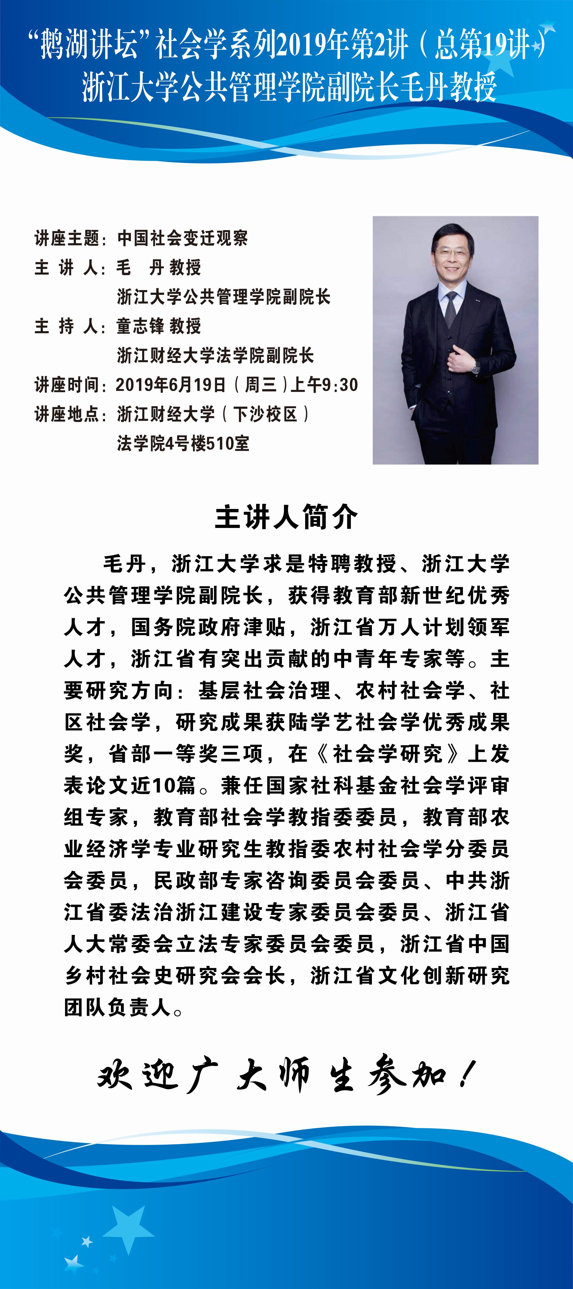 “鹅湖讲坛”社会学系列2019年第2讲(总第19讲)浙江大学公共管理足球推荐 毛丹副院长