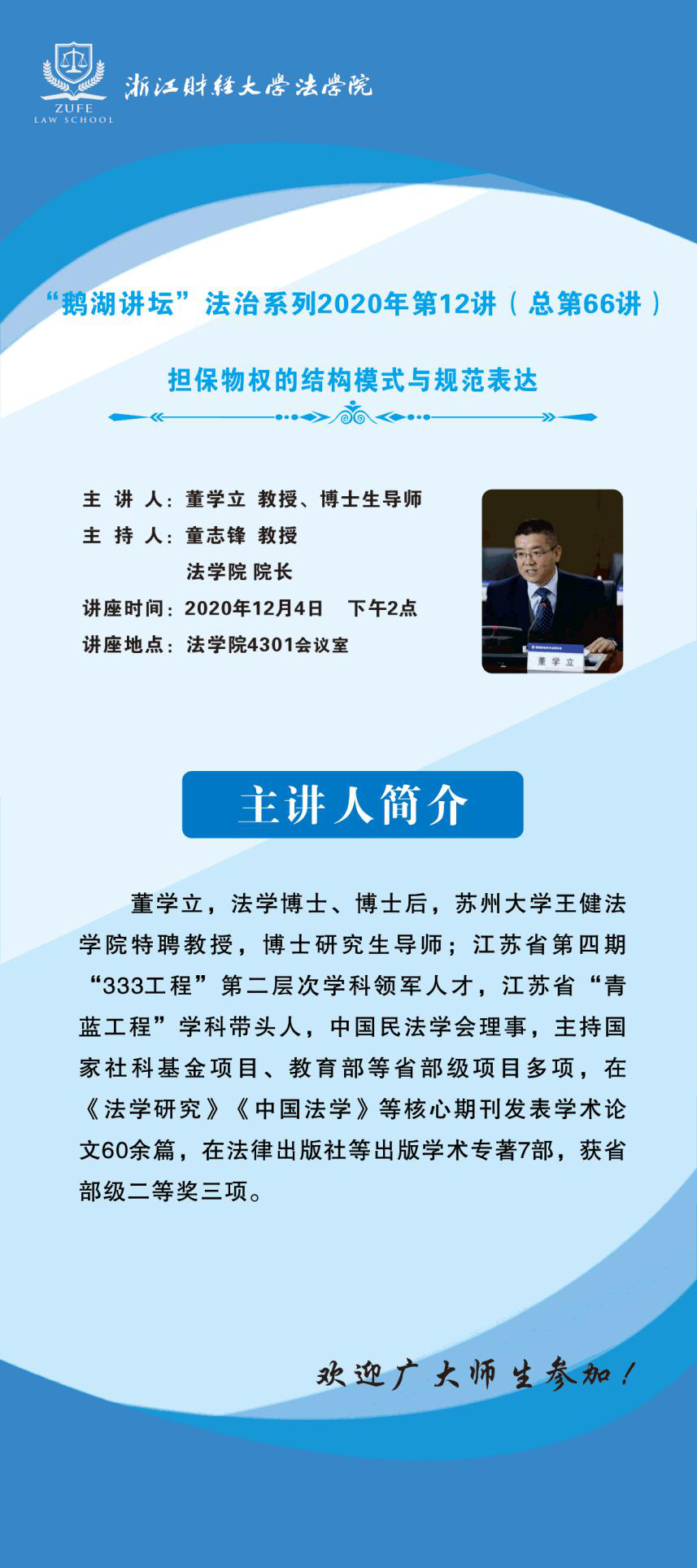 “鹅湖讲坛”法治系列2020年第12讲(总第66讲)苏州大学王健足球推荐 董学立教授