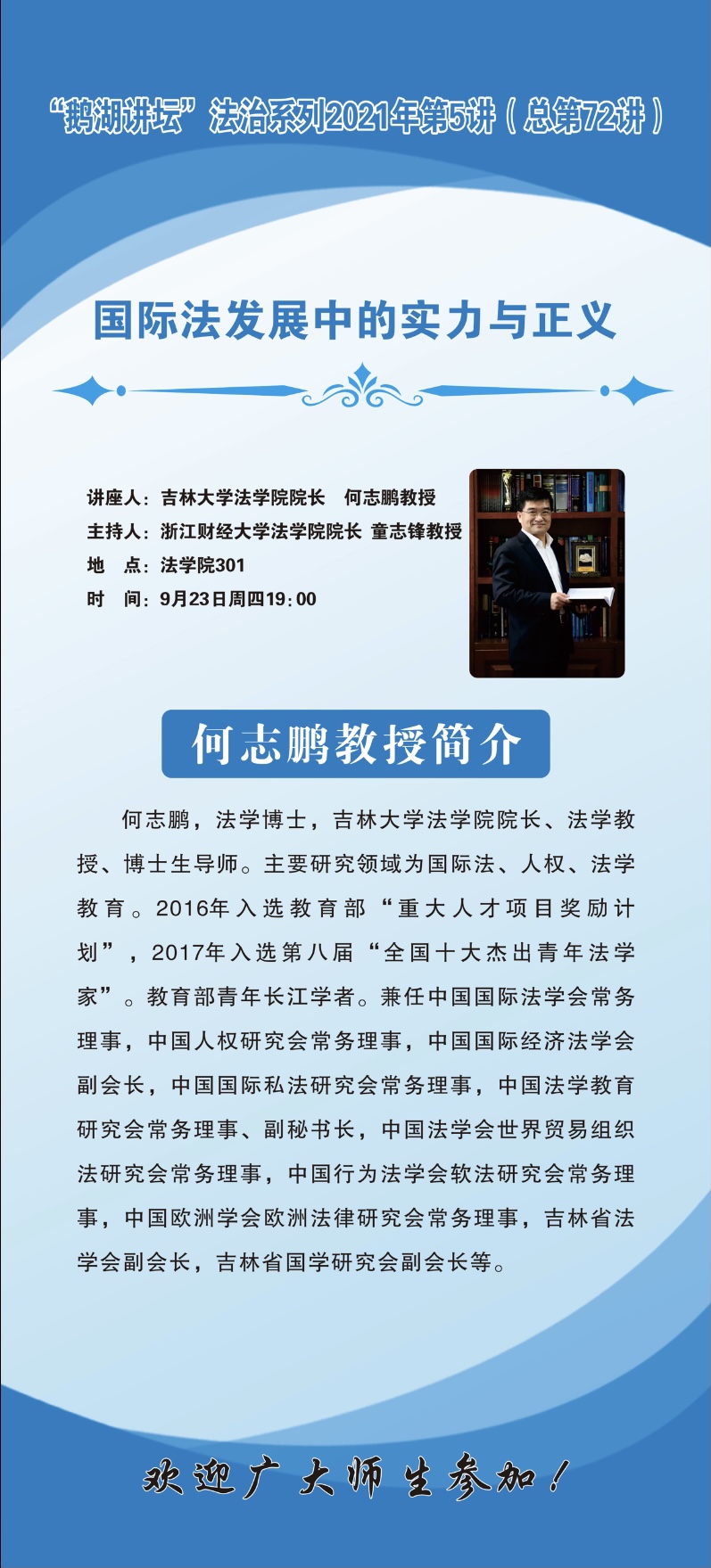 “鹅湖讲坛”法治系列2021年第5讲(总第72讲)吉林大学足球推荐 院长何志鹏教授