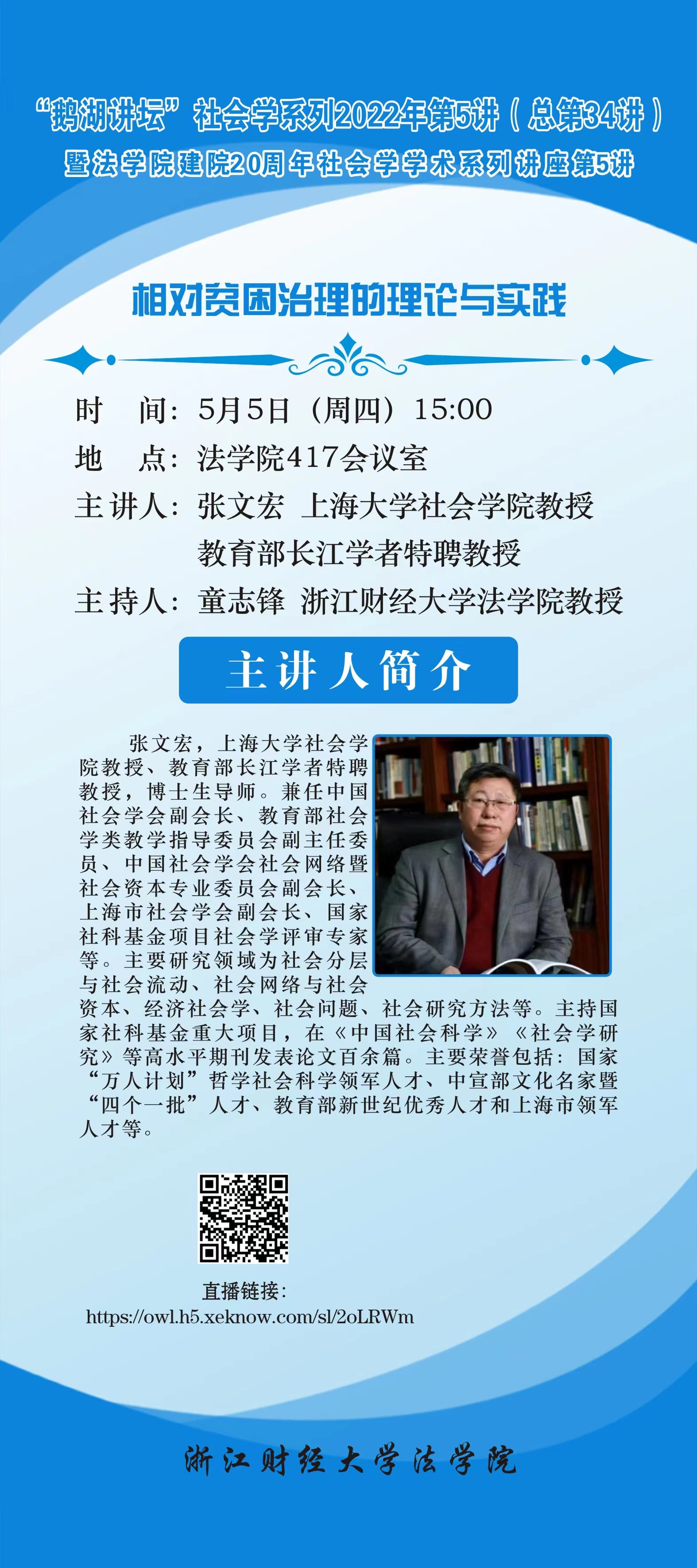 “鹅湖讲坛”社会学系列2022年第5讲暨足球推荐 建院20周年社会学学术系列讲座第5讲上海大学张文宏教授