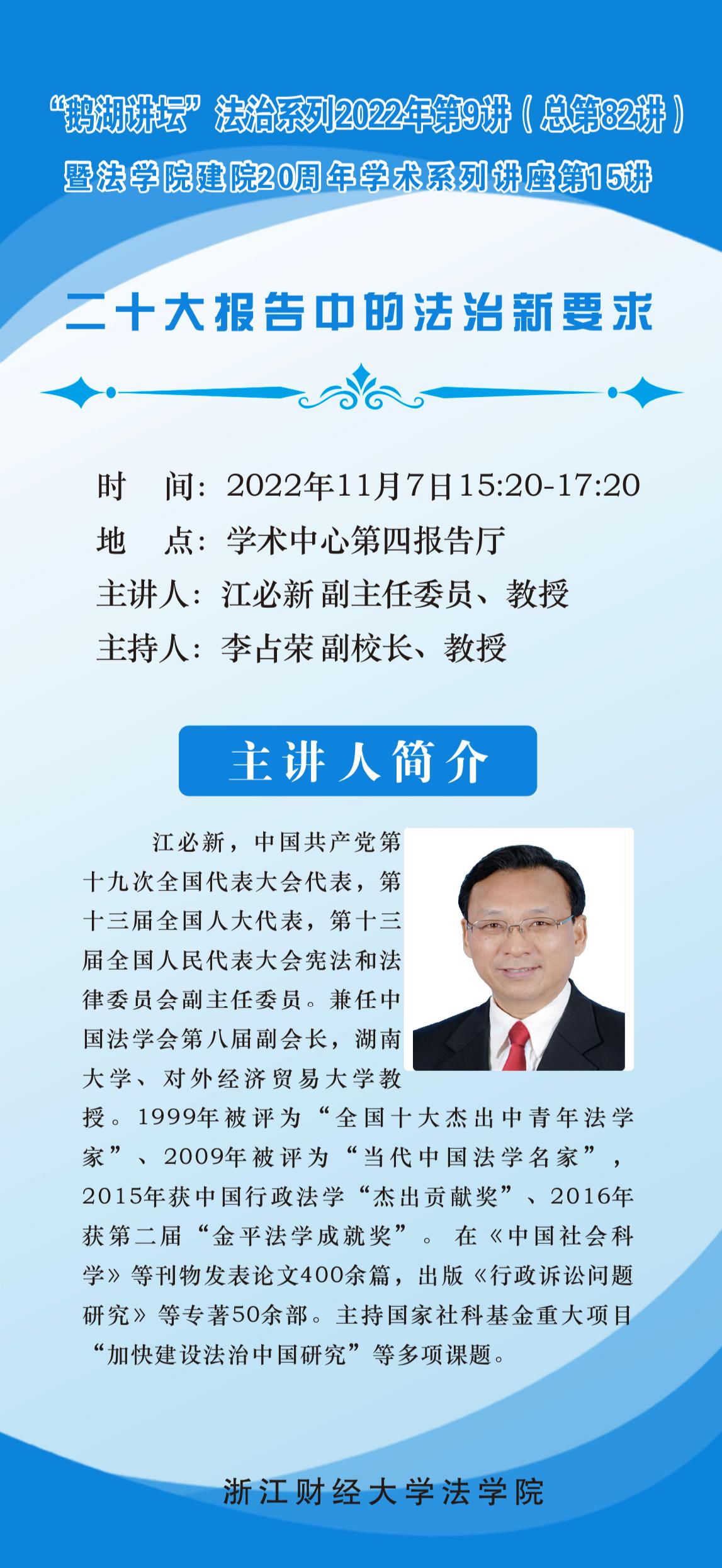 “鹅湖讲坛”2022年法治系列第9讲暨足球推荐 建院20周年学术系列讲座第15讲江必新教授